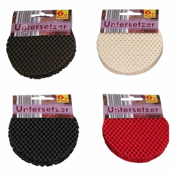 6er Pack Glas-Untersetzer in Dunkelbraun, Creme, Schwarz oder Rot. Beachten Sie, dass Sie den Untersetzer bei einer Online Bestellung nicht auswählen, aber in Ihrem nächstgelegenen ROLLER-Markt je nach Bestand zu Ihrer Lieblingsfarbe greifen können.