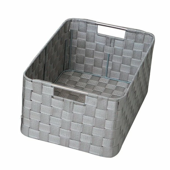 Praktischer Aufbewahrungskorb aus Polypropylen-Geflecht mit Edelstahl-Griffen. Das extra kleine Format eignet sich besonders gut für Kleinteile im Haushalt.