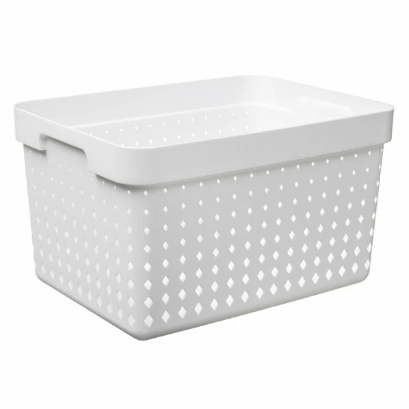In diesem weißen Aufbewahrungskorb mit einem Fassungsvermögen von etwa 16 Liter können Sie in Ihren vier Wänden perfekt Ordnung halten. Egal ob im Badezimmer, in der Küche oder im Wohnzimmer den Korb können Sie überall verwenden.