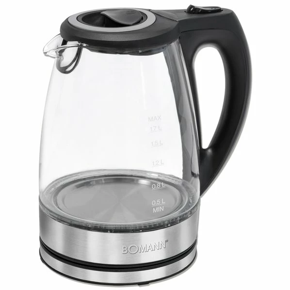 Ein Wasserkocher ist absolut hilfreich im Haushalt. Eine Tasse Tee oder die Wärmeflasche hat man schnell mit heißem Wasser gefüllt. Der BOMANN Glas-Wasserkocher WKS 6032 G CB hat ein Fassungsvermögen von etwa 1,7 Liter. Das hitzebständiuge Sicherheitsglas schützt Sie vor Verbrennungen. Die Basisstation wird an den Stromkreis angeschlossen, so können Sie das Wasser super leicht Ein- und Ausgießen.