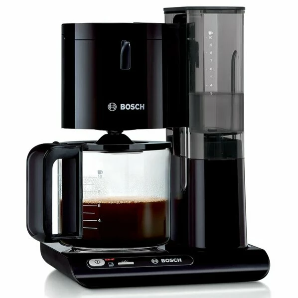 Der morgendliche erste Kaffee ist Genuss pur! Mit der BOSCH Filterkaffeemaschine TKA8013 gelingt dir jede Tasse Kaffee. Mit seinem eleganten Design in Schwarz bettet sie sich perfekt in dein bestehendes Küchendesign ein. Der herausnehmbare Wassertank erleichtert Dir das Nachfüllen von Wasser und die Reinigung der Kaffeemaschine. Die Kaffeemaschine verfügt zudem über einen Aroma Sensor, wodurch auch kleine MEngen perfekt gebrüht werden sowie über eine automatische Abschaltung nach 40 Minuten Warmhalten.