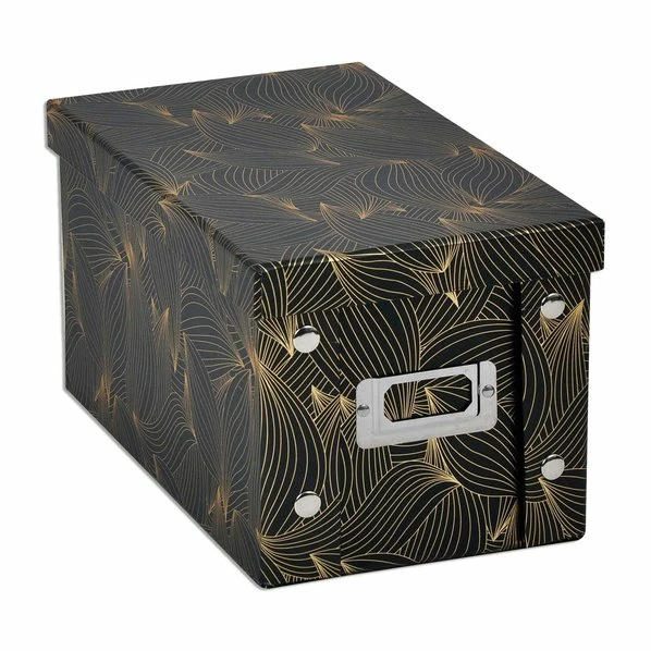 Aufbewahrungsbox in edlem Gold und Schwarz. Die Box eignet sich vom Format her perfekt für die Aufbewahrung von CDs. Mit einem Deckel können Sie die Box verschließen. Das Design lässt sich vielseitig kombinieren und wird ein Blickfang in Ihrem Regal sein.