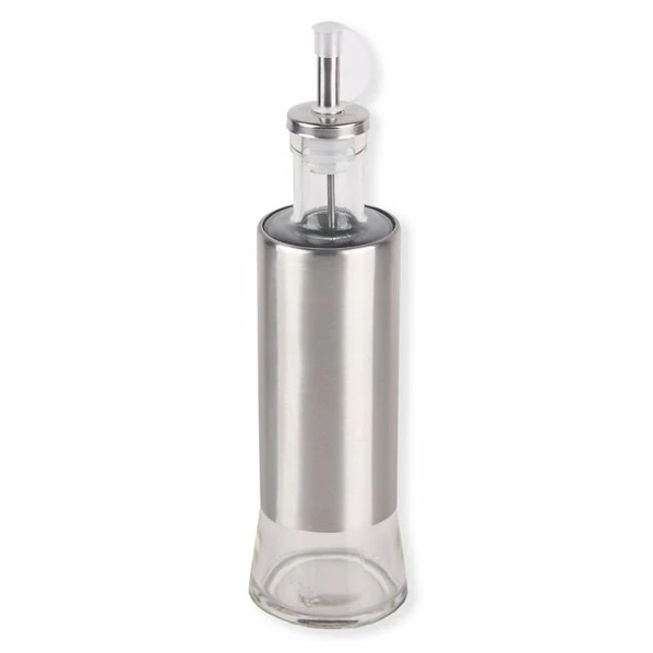 Diese elegante Essig-/Ölflasche besteht aus Glas und Edelstahl und darf in keiner Küche fehlen. Sie gibt in der Küche und auf dem Esstisch eine tolle Figur ab und hat einen praktischen Ausgießer.