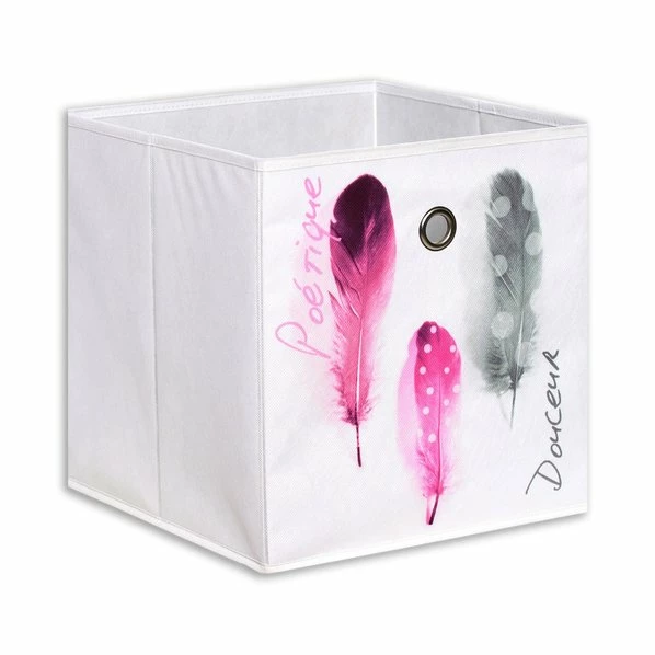 Mit dieser weißen Aufbewahrungsbox im pinken Design mit Federn, kann jeder einfach Ordnung halten. Sie ist ein schöner und gelichzeitig praktischer Hingucker in jedem Schlafzimmer, Wohnzimmer oder Kinderzimmer.