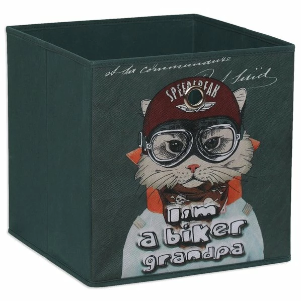 Nicht nur etwas für Katzenfans ist diese Aufbewahrungsbox mit Aufdruck. Sie bietet großzügigen Raum für vielerlei Einsatzmöglichkeiten. Egal, ob Sie Socken im Schlafzimmer, Spielsachen im Kinderzimmer oder Unterlagen im Büro fassen soll, sie ist überall ein witziger und praktischer Hingucker.