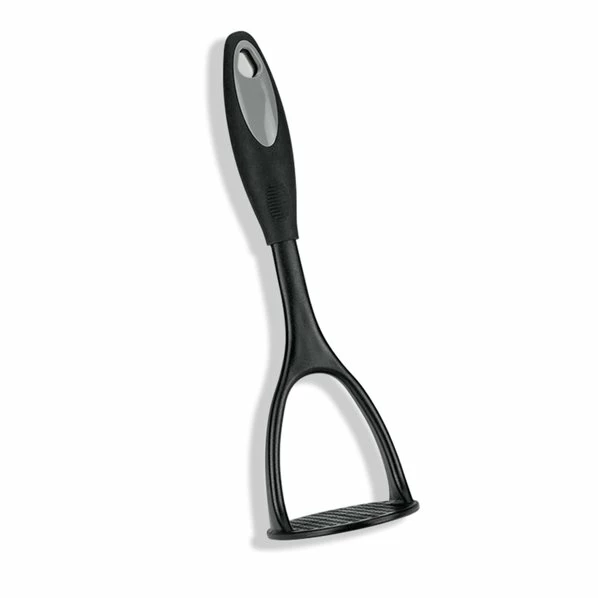 Mit diesem Kartoffelstampfer können Sie ganz einfach Kartoffeln zu Püree stampfen. Das Material hält Temperaturen bis zu 210 Grad stand. Der Griff ist für einen einfachere Handhabung mit Gummi ausgestattet.
