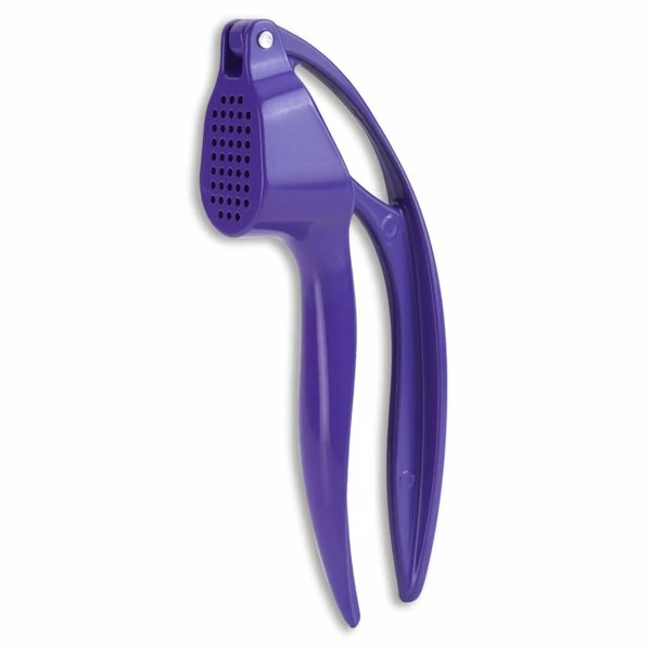 Eine lilafarbene Knoblauchpresse die ihren Zweck erfüllt und tolll aussieht.