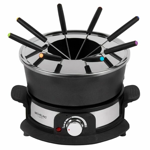 Ob Käse- oder Schokoladenfondue, das MICHELINO Fondue 74385 ist für beides einfach wie geschaffen! Es eignet sich für acht Personen, sodass du leckere Mahlzeiten mit Freunden oder mit der Familie zubereiten kannst.