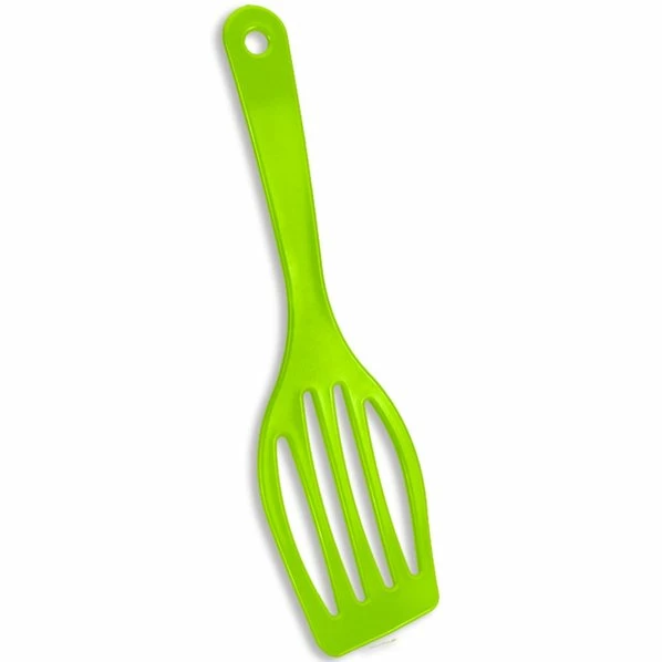 Ein grüner Pfannenwender der Freude beim Kochen verbreitet.