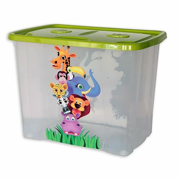 Schaffen Sie mit der Rollbox mit Afrika-Motiv Ordnung im Kinderzimmer. Die Box ist mit vier Rollen ausgestattet und verfügt über einen Deckel.
