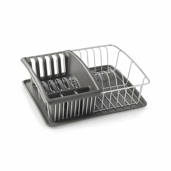 Sie erhalten den Spülkorb mit Abtropfschale und einem Besteckkasten. Die einzelnen Bestandteile des dreiteiligen Sets sind herausnehmbar und können somit auch individuell genutzt werden.