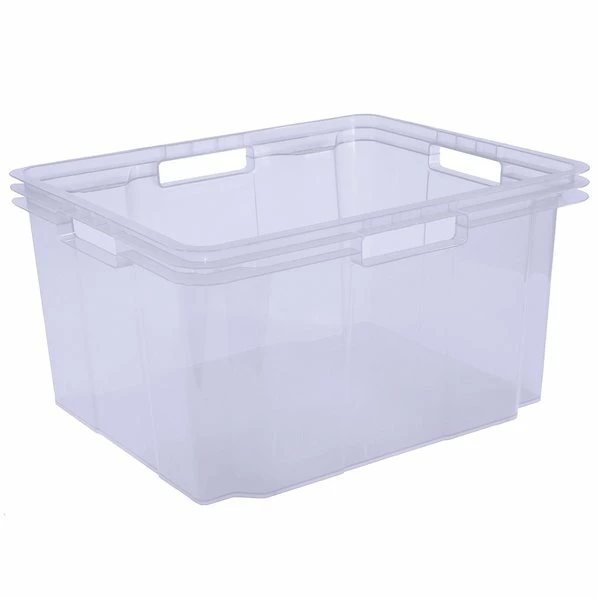 Mit dieser pastelllila Stapelbox aus Kunststoff bringen Sie Ordnung in Ihr Chaos. Sie ist besonders praktisch mit Griffloch an jeder Seite ausgestattet, so können Sie diese Box komfortabel heben und transportieren. Durch die Transparenz sehen Sie auf den ersten Blick und auch im gestapelten Zustand sofort, was drin ist und müssen nicht mehr suchen.