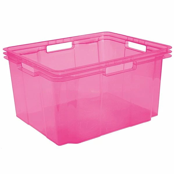 Mit dieser pastellpinkfarbenen Stapelbox aus Kunststoff bringen Sie Ordnung in Ihr Chaos. Sie ist besonders praktisch mit Griffloch an jeder Seite ausgestattet, so können Sie diese Box komfortabel heben und transportieren. Durch die Transparenz sehen Sie auf den ersten Blick und auch im gestapelten Zustand sofort, was drin ist und müssen nicht mehr suchen.