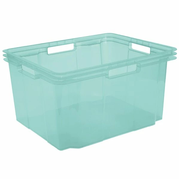 Mit dieser pastelltürkisfarbenen Stapelbox aus Kunststoff bringen Sie Ordnung in Ihr Chaos. Sie ist besonders praktisch mit Griffloch an jeder Seite ausgestattet, so können Sie diese Box komfortabel heben und transportieren. Durch die Transparenz sehen Sie auf den ersten Blick und auch im gestapelten Zustand sofort, was drin ist und müssen nicht mehr suchen.
